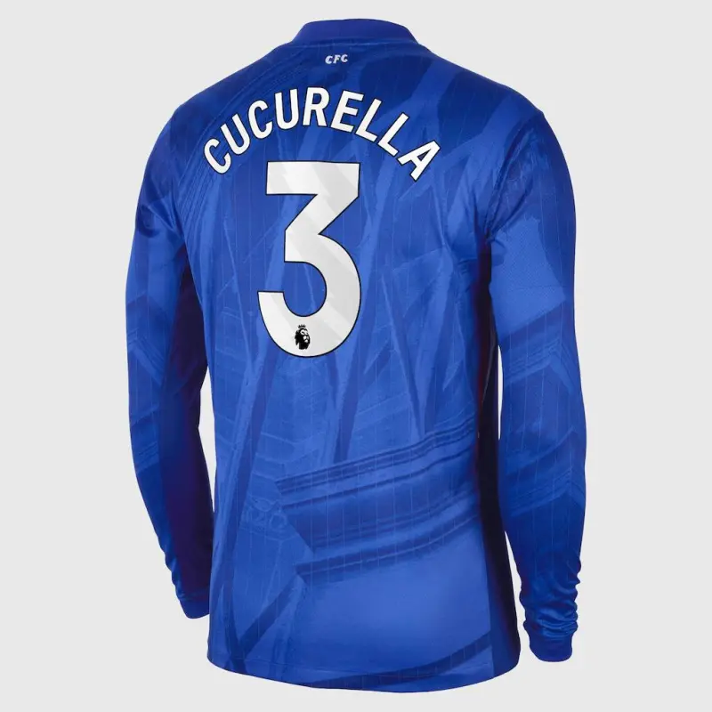 Chelsea Nike Home Stadium Langarmtrikot 2025-26 mit Cucurella 3-Aufdruck
